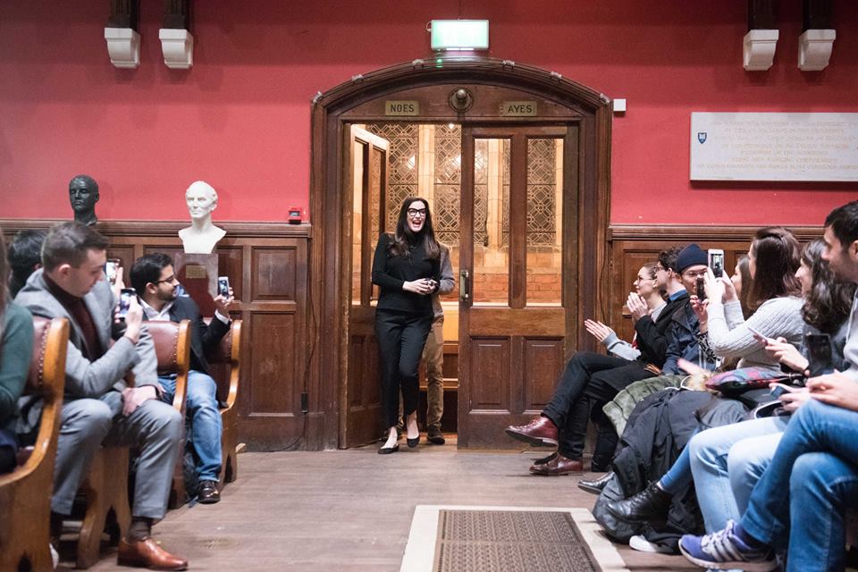 with Chris ZabilowiczPrev pic Speaking in front of The Oxford Union, University of Oxford