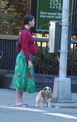 Liv Tyler walking Neal the dog in New York while talking on a cell phone, September 20, 2004
