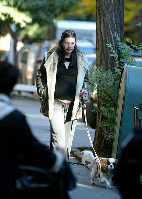 Pregnant Liv taking Neal the dog for a walk, New York, October 29th 2004