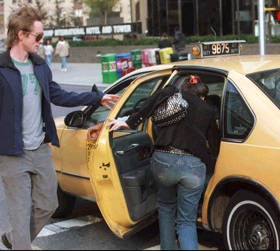 Liv and fiance Royston Langdon walking in New York in 2001