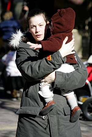 Liv, Milo and Neal taking a walk in New York